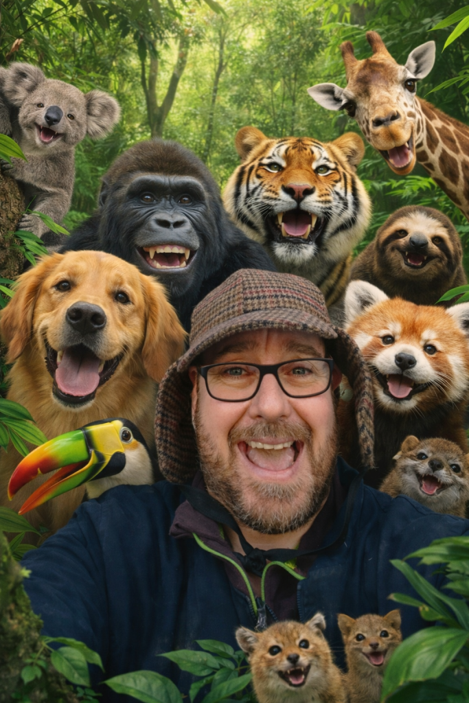 Just the animals roaming a vibrant green and blue globe –